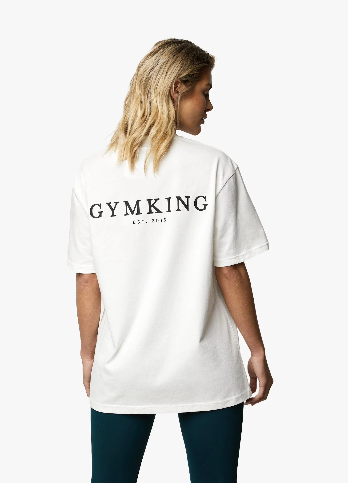 - Printed ‘Gym King EST’ branding on front chest, in black