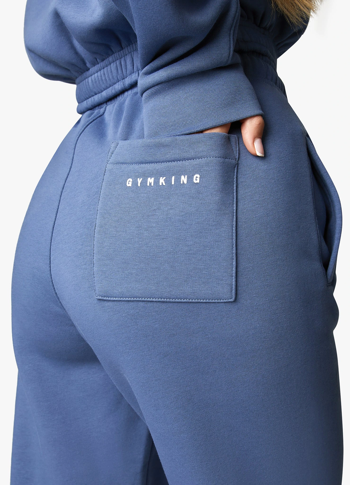 - Gym King logo on back pocket, in White