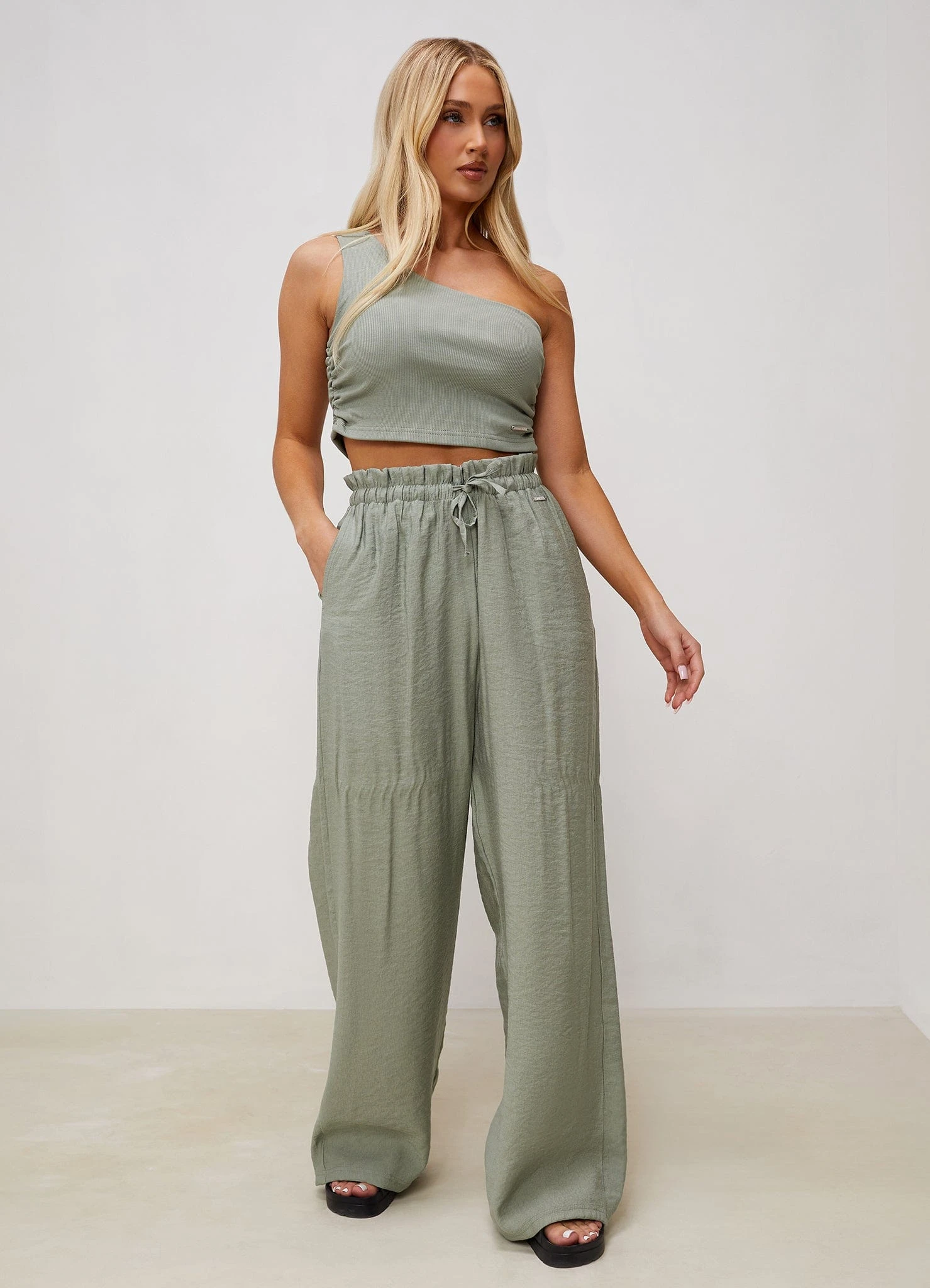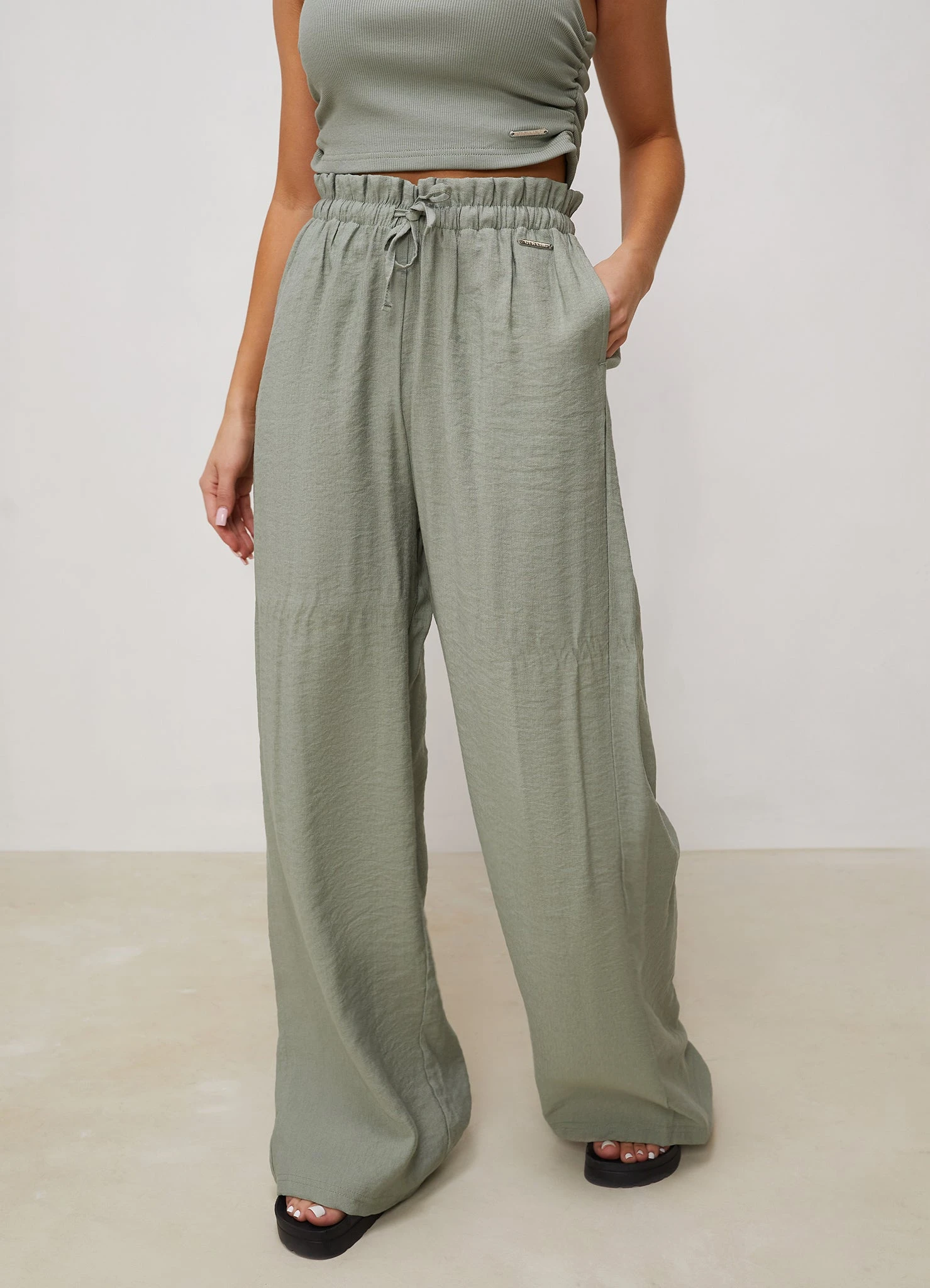 - Elasticated drawstring waist
